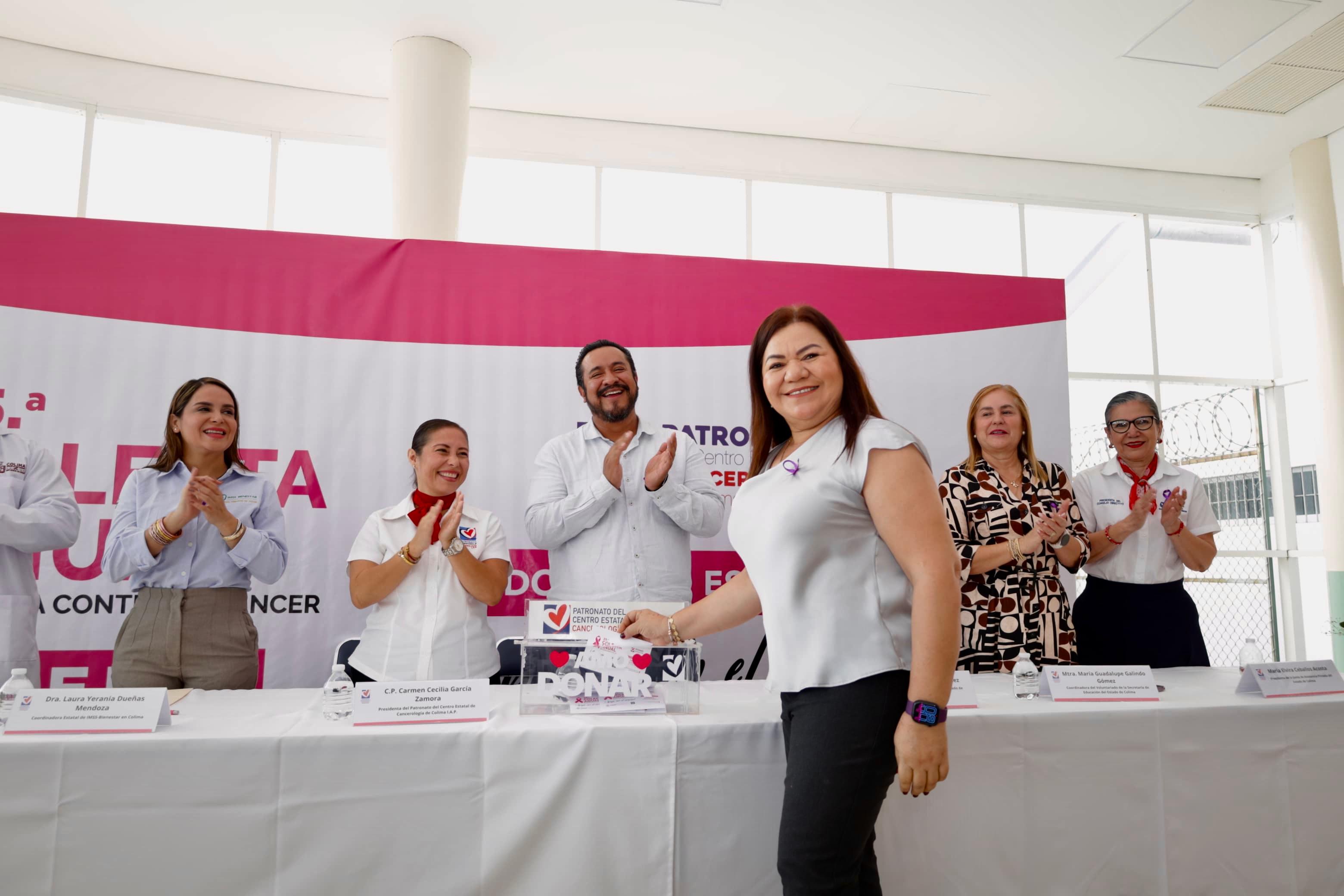 El Patronato del Centro Estatal de Cancerología puso en marcha la vigésimaquinta edición de la Colecta Anual de Lucha contra el Cáncer 2026, con el apoyo del Gobierno del Estado de Colima, a través de la Secretaría de Salud, cuyos recursos recaudados se destinarán a pacientes que requieren apoyo para iniciar o continuar su tratamiento oncológico en el Centro Estatal de Cancerología.