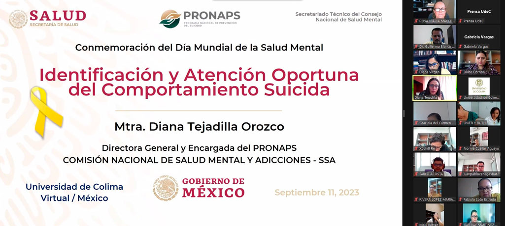 La Universidad de Colima, a través del Centro Universitario para el Bienestar Integral (CUBI) y la Facultad de Psicología, dio inicio este lunes, de manera virtual, a la Semana Universitaria para la Conmemoración del Día Mundial para la Prevención del Suicidio. El evento tiene como objetivo promover acciones para abordar esta problemática que afecta a la población a nivel mundial.