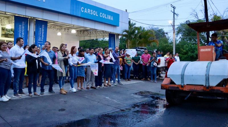 Villa de Álvarez, Col.- Tey Gutiérrez Andrade, Presidenta Municipal de Villa de Álvarez, dio el banderazo de arranque a la obra de rehabilitación del pavimento con asfalto de las avenidas María Ahumada de Gómez y Tecnológico, desde la Glorieta de la Diosa del Agua hasta la calle Cuyutlán, en la colonia Liberación.