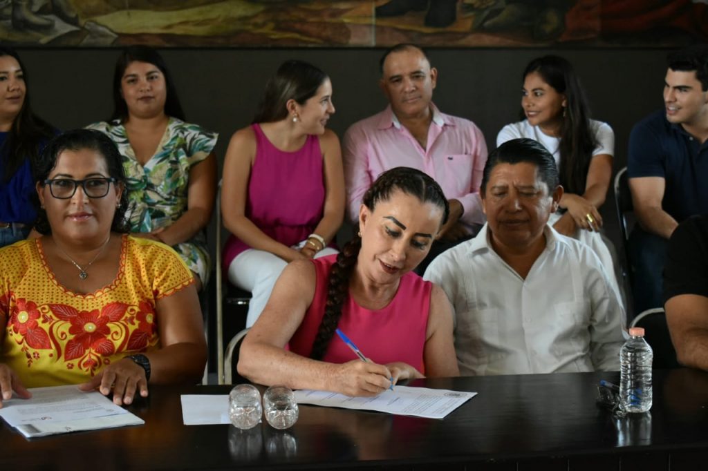 En el Salón Verde de la Presidencia Municipal, la Alcaldesa Tey Gutiérrez Andrade firmó la escritura que otorga al Ayuntamiento de Villa de Álvarez la propiedad de los predios de El Naranjal, pues para la urbanización progresiva que se realizará en el lugar, es necesario que las fracciones estén a nombre de una instancia gubernamental, para luego escriturar esos predios a cada uno de sus poseedores.