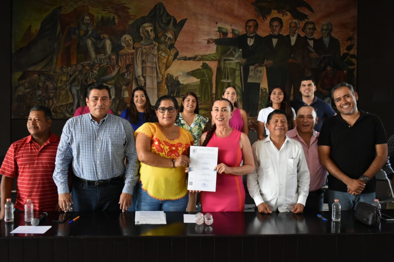 En el Salón Verde de la Presidencia Municipal, la Alcaldesa Tey Gutiérrez Andrade firmó la escritura que otorga al Ayuntamiento de Villa de Álvarez la propiedad de los predios de El Naranjal, pues para la urbanización progresiva que se realizará en el lugar, es necesario que las fracciones estén a nombre de una instancia gubernamental, para luego escriturar esos predios a cada uno de sus poseedores.