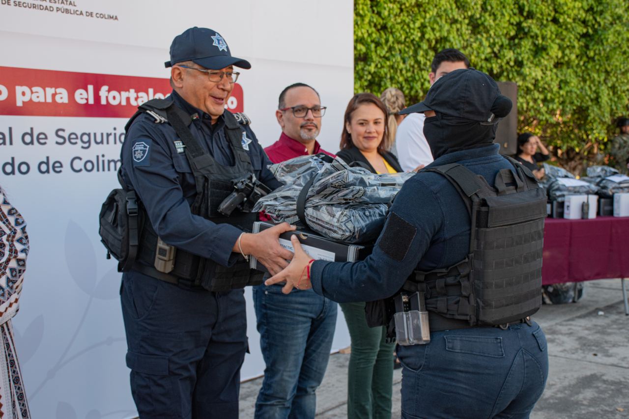 El Gobierno del Estado de Colima que encabeza la gobernadora Indira Vizcaíno Silva entregó la mañana de este viernes diversos bienes y equipamiento a instituciones de seguridad de la entidad, así como a la Fiscalía General del Estado (FGE), con el objetivo de fortalecer su labor a favor de las y los colimenses, con una inversión superior a los noventa millones de pesos.