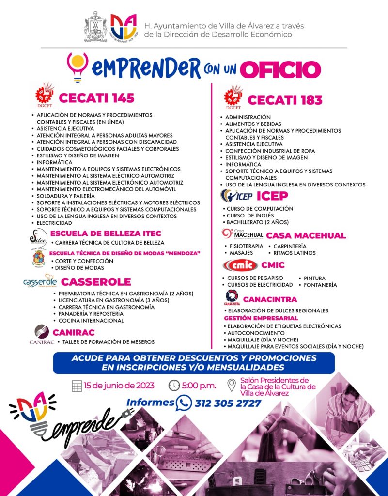 El Gobierno de Villa de Álvarez que encabeza Tey Gutiérrez, llevará a cabo el evento “Emprender con un Oficio” con el que se busca que a través del estudio y la capacitación, cada vez sean más los ciudadanos que emprendan y potencialicen un negocio.