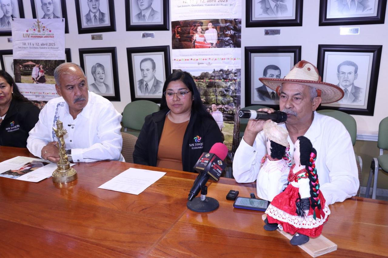 En esta conferencia de prensa estuvieron integrantes de la Comisión de la gira promocional del LIV Concurso Nacional de Baile de Huapango Huasteco: Lourdes Martínez Vega, regidora y coordinadora general; Miguel Martínez Solano, subcoordinador general; Leidy Elizabeth González, regidora; Felipe Camacho Martínez, cronista municipal de San Joaquín, y Humberto Gazpar Osorio.