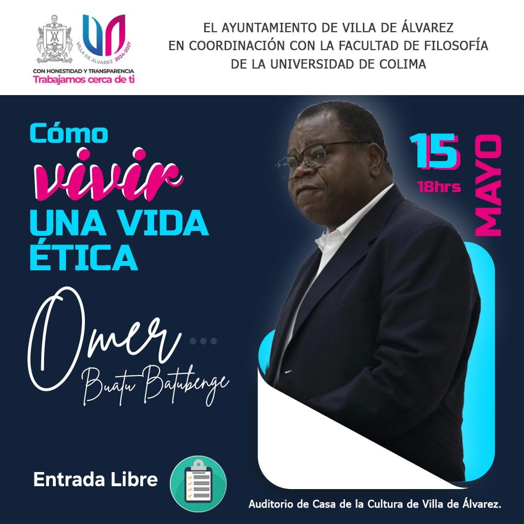 Villa de Álvarez, Col.- El H. Ayuntamiento de Villa de Álvarez, en coordinación con la Facultad de Filosofía de la Universidad de Colima, invitan a la conferencia “Cómo vivir una vida ética” que será impartida por el Doctor Omer Buatu Batubenge.