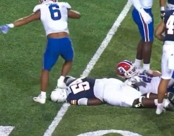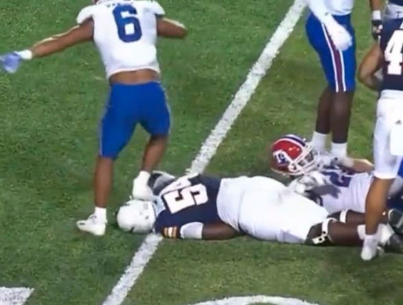 Un joven universitario causó indignación en redes sociales luego de que atacó a otro deportista y lo pateó brutalmente sobre el terreno de juego. Los hechos ocurrieron la noche del pasado sábado 31 de septiembre en las instalaciones de la Universidad de Texas, en El Paso, cuando se enfrentaba el equipo de los Bulldogs contra UTEP. El atacante embistió a la víctima y, una vez que estaba en el suelo, lo pateó fuertemente en la cabeza mientras el resto del equipo se encontraba distraídos.