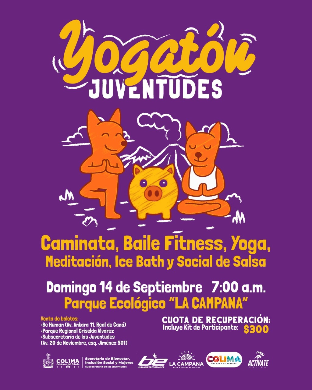 La Subsecretaría de las Juventudes (Subsejuv) del Gobierno del Estado de Colima, en coordinación con el Parque Ecológico ‘La Campana’, prepara el primer Yogatón Juventudes, que se efectuará el domingo 14 de septiembre en esa misma área natural protegida a partir de las 7:00 de la mañana, con el objetivo de continuar con la recaudación de fondos para apoyar el Boteo Teletón 2025 y, con ello, lograr la construcción de un Centro de Rehabilitación e Inclusión Infantil (CRIT) en esta ciudad capital.