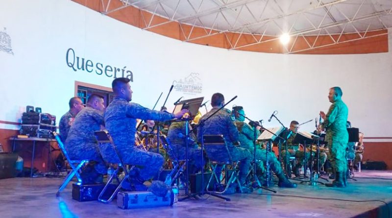 La Banda de Música de la V Región Militar realiza presentación musical en la localidad de Quesería en el municipio de Cuauhtémoc