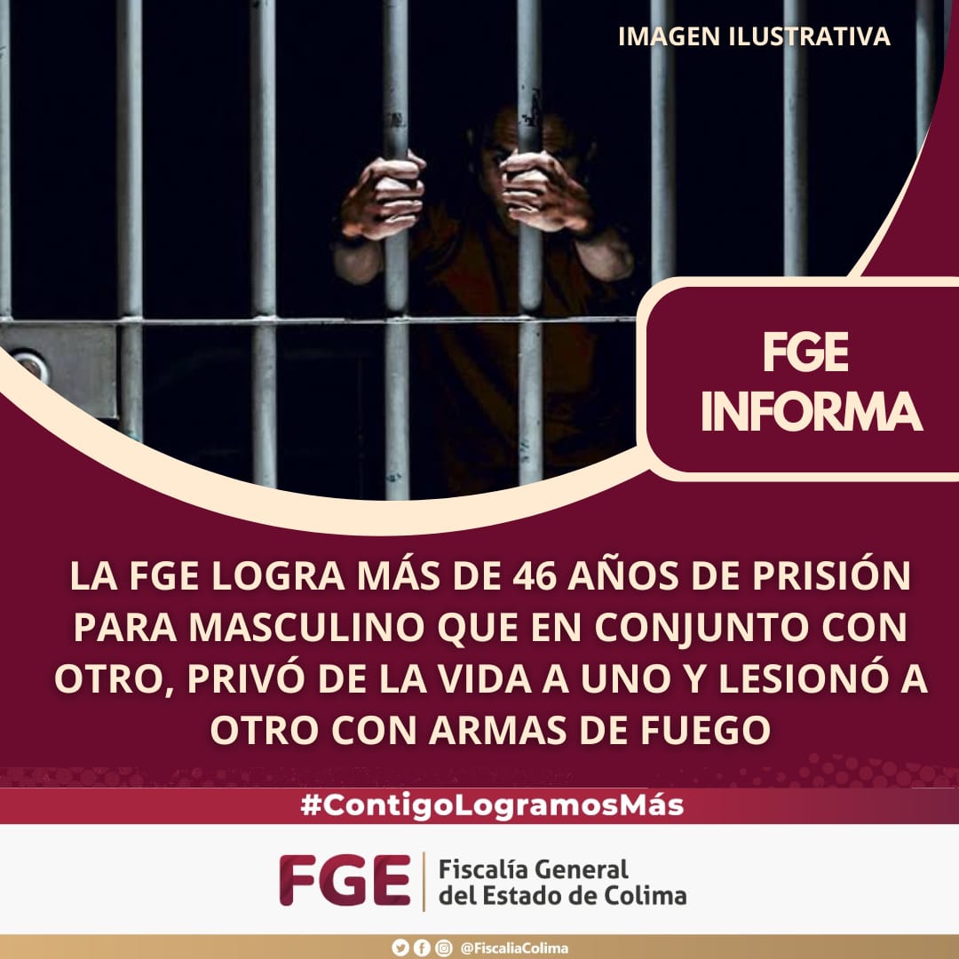 Los trabajos arduos de investigación del personal de esta Fiscalía General del Estado (FGE) dieron las pruebas suficientes para que el tribunal de enjuiciamiento decretara sentencia condenatoria a Marco Antonio “N” por su responsabilidad penal en los delitos de homicidio calificado y homicidio calificado en grado de tentativa cometido en agravio de dos personas en el municipio de Manzanillo.