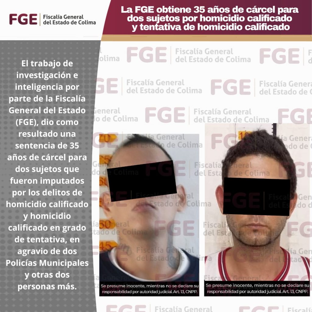 El trabajo de investigación e inteligencia por parte de la Fiscalía General del Estado (FGE), dio como resultado una sentencia de 35 años de cárcel para dos sujetos que fueron imputados por los delitos de homicidio calificado y homicidio calificado en grado de tentativa, en agravio de dos Policías Municipales y otras dos personas más.