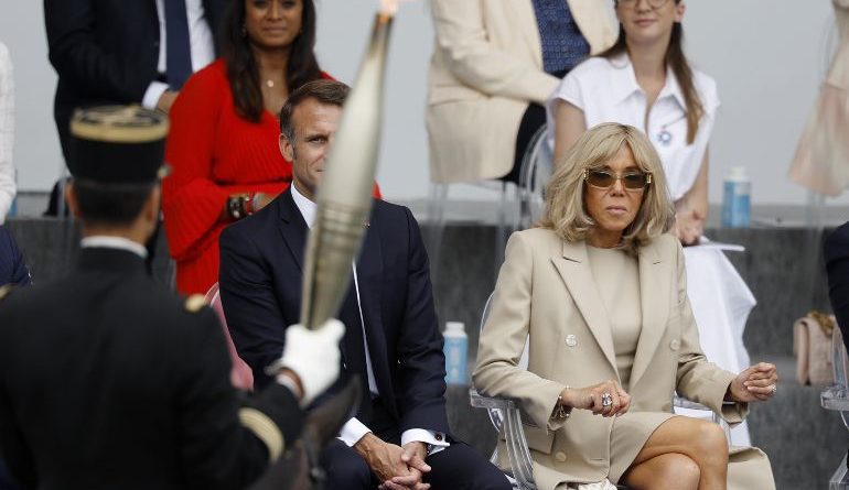 Acompañado de su gobierno en funciones, Macron, junto a su esposa Brigitte, saludó la llegada de la antorcha olímpica con la interpretación del himno nacional francés, la Marsellesa.