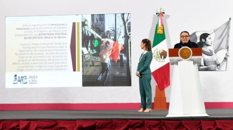 Rosa Icela Rodríguez Velázquez, secretaria de Gobernación, informó que se lanzó la estrategia “México te abraza” para recibir a las y los mexicanos que sean repatriados desde Estados Unidos con una atención integral que incluye incorporación de programas sociales, atención médica, empleo y un apoyo económico de 2 mil pesos para transporte con la tarjeta “Bienestar Paisano”.