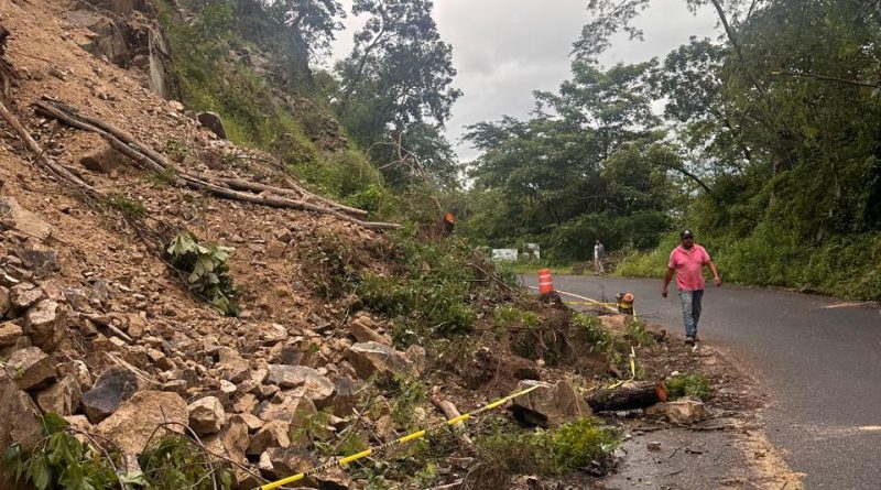 Las fuertes lluvias que dejó la tarde de este sábado el sistema de baja presión «John», provocaron deslaves de material petreo, los cuales bloquearon esa carretera estatal.