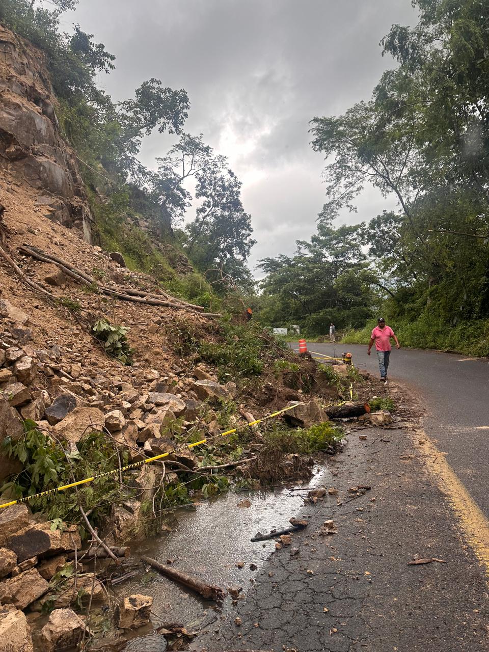 Las fuertes lluvias que dejó la tarde de este sábado el sistema de baja presión «John», provocaron deslaves de material petreo, los cuales bloquearon esa carretera estatal.