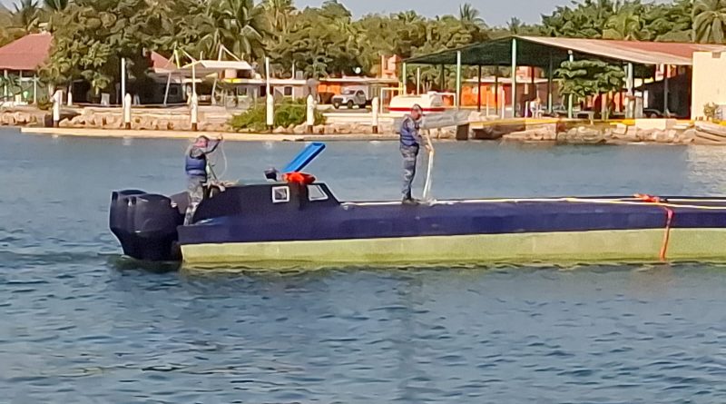 La mañana de este viernes arribó a las instalaciones de la Sexta Región Naval el semisumergible que transportaba cocaína y que fue ubicado cuando navegaba frente a costas de Manzanillo, Colima.