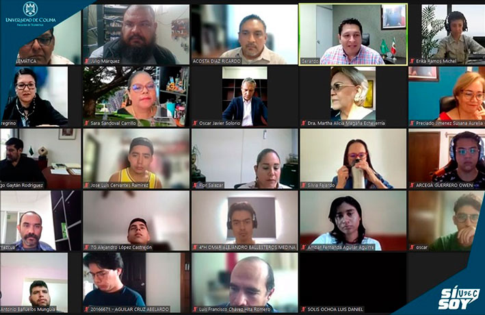 En el evento también estuvieron conectados Juan Diego Gaytán, delegado de Colima; Martha Alicia Magaña, coordinadora general de Docencia; Susana Aurelia Preciado, directora general de Educación Superior, y Víctor Méndez, presidente de la Asociación de Egresados de la Facultad de Telemática.