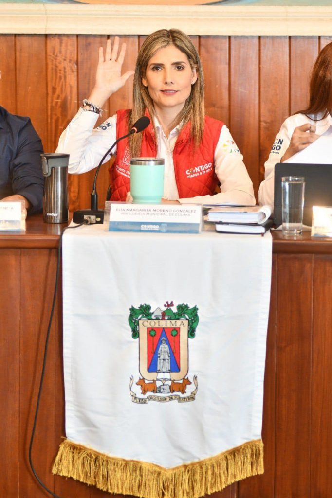 Margarita Moreno encabezó una sesión de cabildo en la que se aprobó por unanimidad de votos, de las y los regidores, aprobar apoyos del Ayuntamiento de Colima para alimentación y traslado a 23 personas auxiliares de comunidades del municipio.