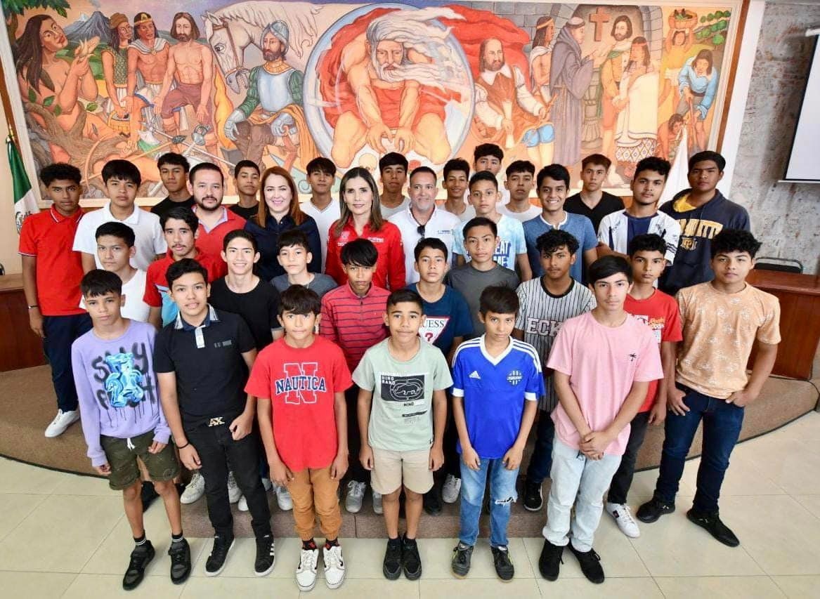 En una ceremonia celebrada en el auditorio del Ayuntamiento de Colima, Margarita Moreno entregó apoyos económicos a 36 jóvenes para que pudieran asistir a un segundo filtro de evaluación, para seguir buscando su sueño de ser jugadores del equipo de futbol profesional Alebrijes.