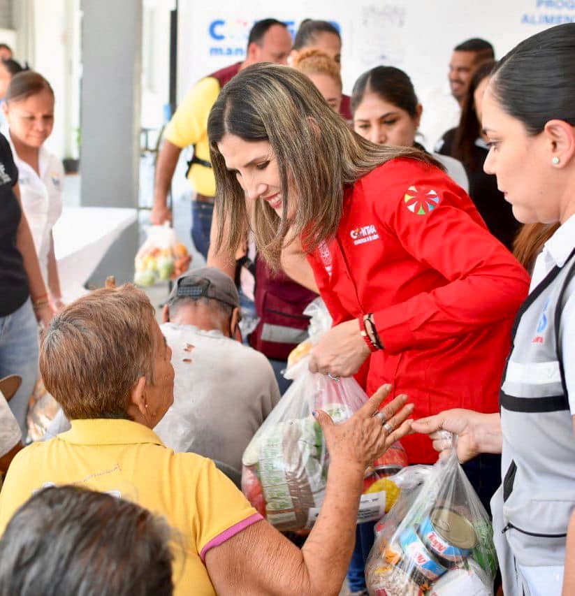 “Estos alimentos que van a recibir, estoy segura que no solo alimentarán su cuerpo, sino también su alma. Porque sabemos que le pondrán el toque especial que es el ingrediente más especial que es el amor a su familia”, comentó.