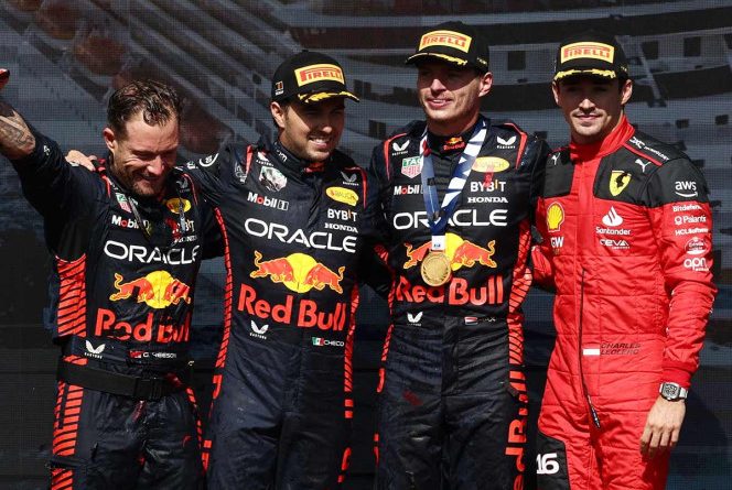Los Red Bull de Max Verstappen y Sergio ‘Checo’ Pérez exhibieron su dominio en el Gran Premio de Bélgica de la Fórmula 1 y lograron el 1-2 sobre el circuito de Spa Francorchamps, con una nueva victoria para el bicampeón neerlandés, además del segundo podio de su carrera para el mexicano en territorio belga; mientras que Charles Leclerc (Ferrari) completó el podio.