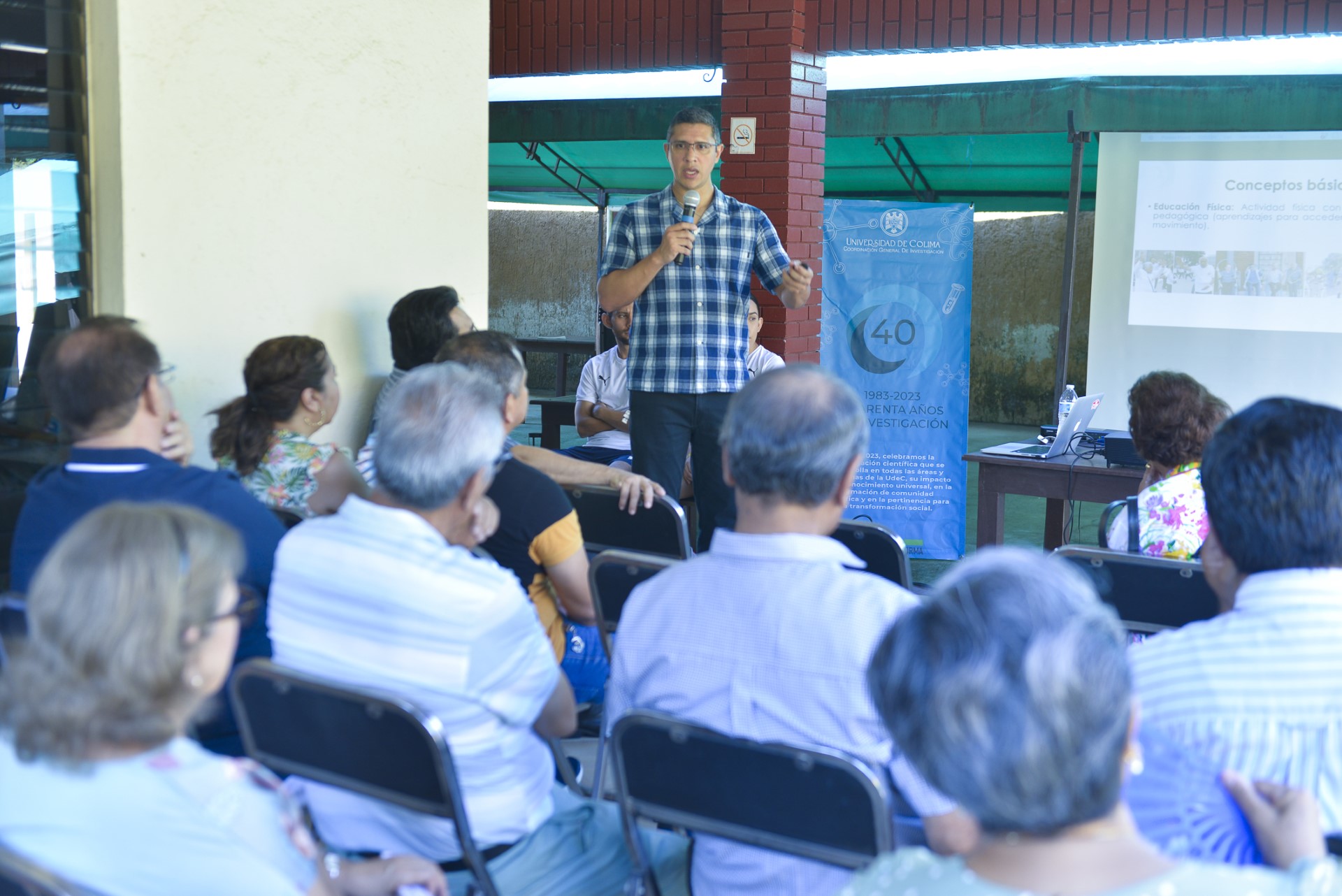En su charla “Actividad física y estilo de vida saludables”, el Dr. Lenin Tlamatini Barajas Pineda, profesor e investigador de la Facultad de Ciencias de la Educación de la Universidad de Colima presentó los resultados de la intervención que durante cuatro meses realizó con jubilados y pensionados de esta casa de estudios