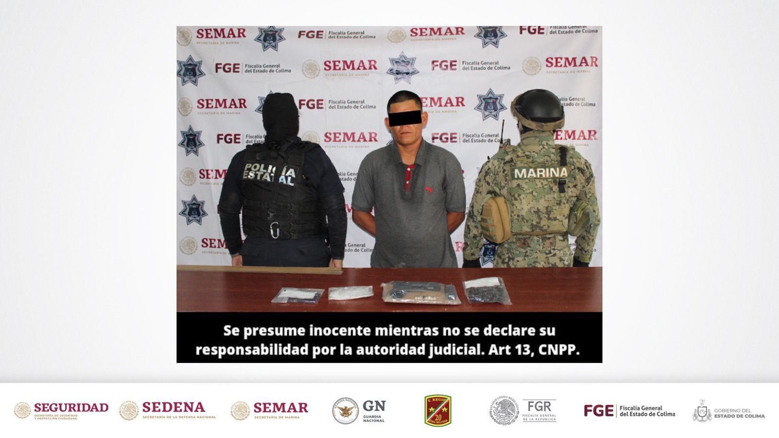 La Mesa de Coordinación Estatal para la Construcción de la Paz y la Seguridad en Colima informa que elementos de la Secretaría de Seguridad Pública (SSP) del Gobierno del Estado de Colima lograron la detención de un hombre que se presume acababa de participar en un homicidio y a quien se le aseguró un arma y diversas dosis de droga sintética.
