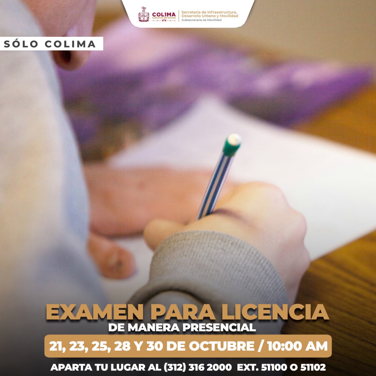 Movilidad Colima invita al examen presencial de licencias, los últimos días de octubre