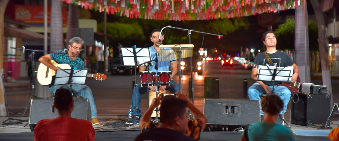 La noche de este jueves, en el andador Adolfo López Mateos en el centro de la cabecera municipal de Tecomán. se realizó este recorrido sonoro dirigido por César Arturo Hernández Venegas, uno de los artistas colimenses beneficiados en la convocatoria de esta gran muestra, que permite exponer las obras del talento colimense frente públicos diversos.