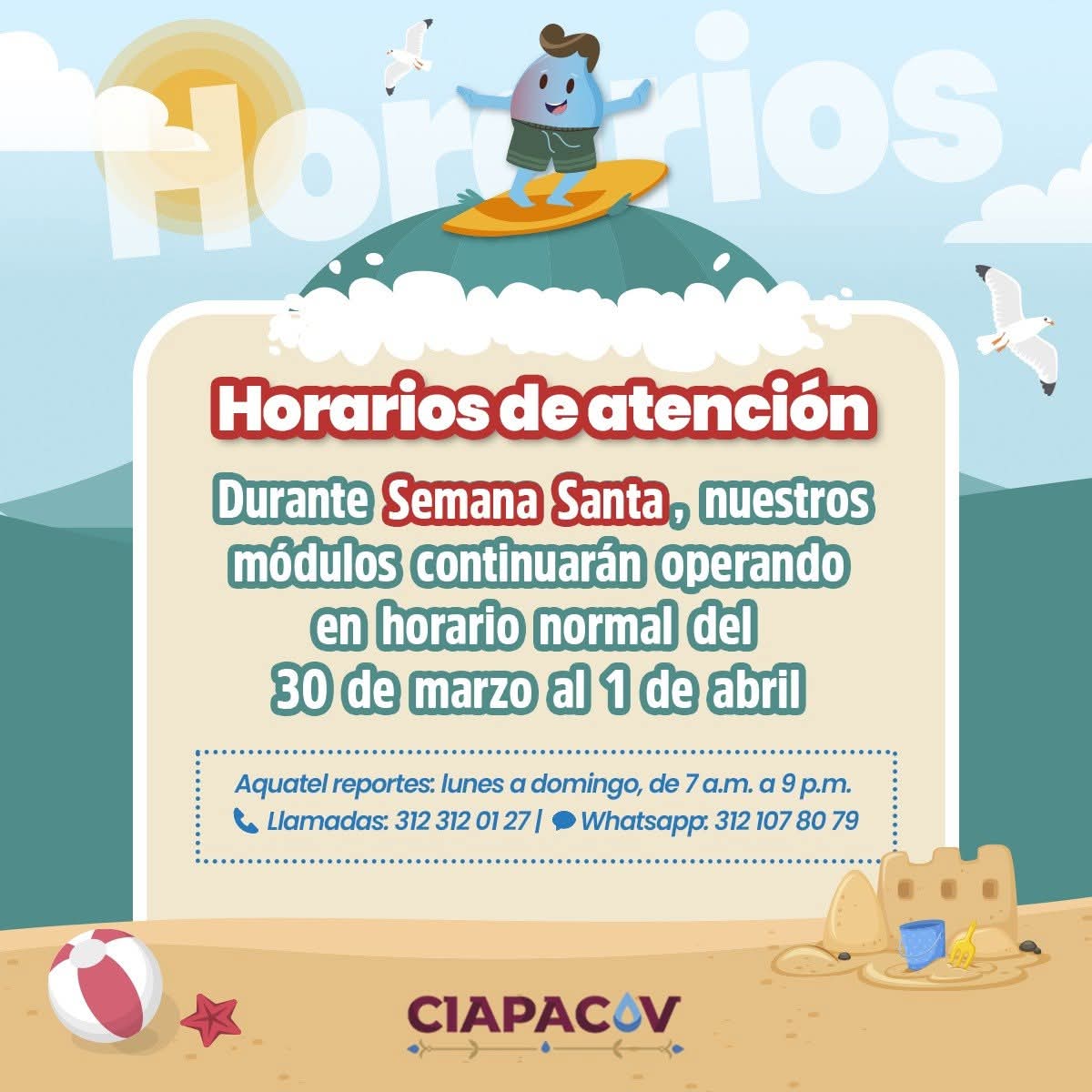 Recuerda que el servicio de reportes Aquatel es permanente y continuará operando en su horario habitual.