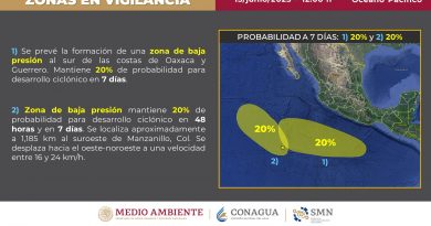 Durante las próximas horas, el centro de ‘Norma’ (ya degradada de huracán a tormenta tropical) se ubicará sobre el Golfo de California dirigiéndose hacia Sinaloa, pero sus bandas nubosas mantendrán condiciones para lluvias puntuales extraordinarias en Baja California Sur, lluvias puntuales torrenciales en Sinaloa, lluvias intensas en Nayarit y lluvias muy fuertes en Colima, Jalisco y Sonora.