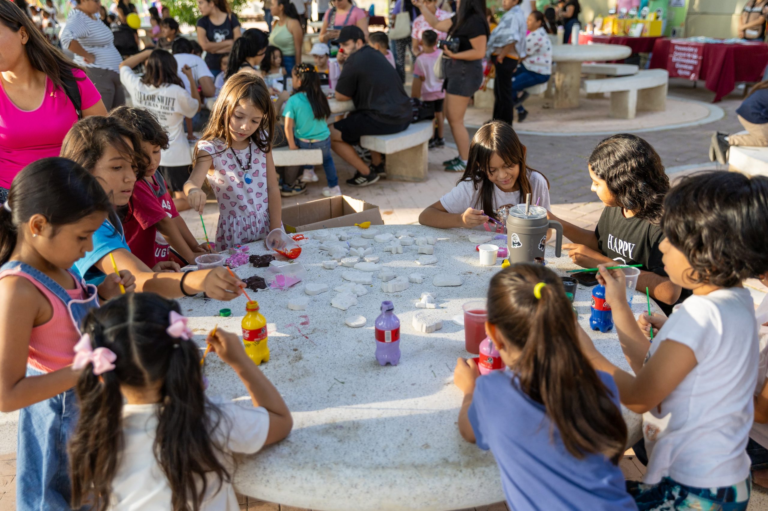 Durante el evento, que tuvo una duración de casi tres horas, se realizaron actividades como búsqueda del tesoro, juegos con resorte, trompo, canicas, serpientes y escaleras, carreras de costales, talleres de arte y manualidades, así como una función de cine al aire libre.