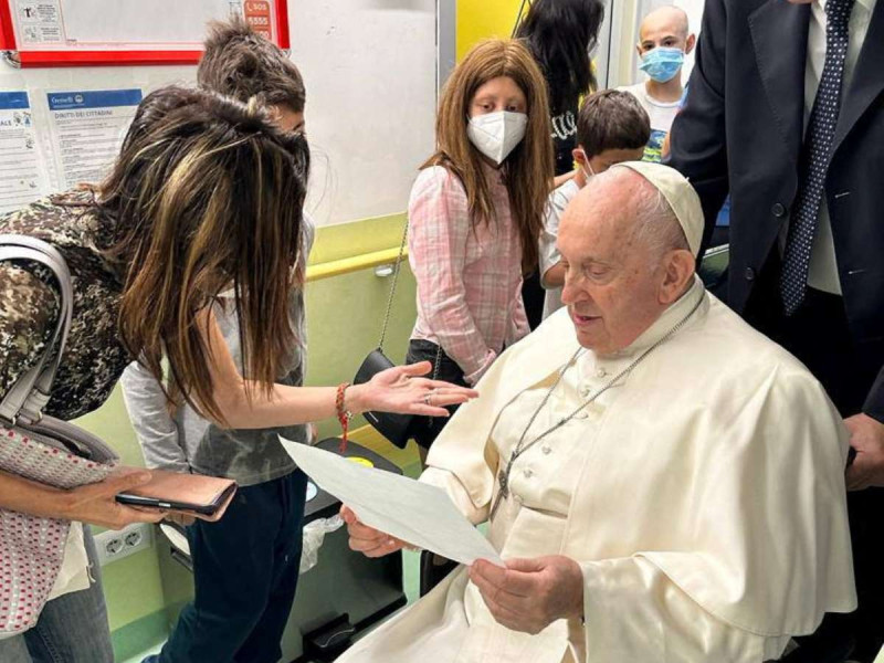 Al final de la visita, se dirigió al servicio de Oncología Pediátrica y Neurocirugía Infantil donde están ingresados los pequeños pacientes que, en los últimos días, han expresado su afecto al Papa a través de numerosas cartas, dibujos y mensajes de pronta recuperación.