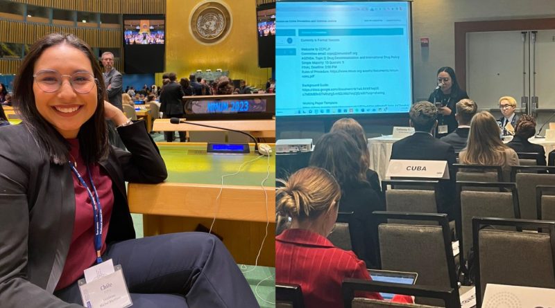 Actualmente, ella realiza un intercambio académico en la University of Illinois at Springfield, en Illinois, EEUU. Para participar, primero se inscribió en la clase Model United Nations, en la que aprendió todo lo relacionado con este evento. Allí practicó su discurso y la forma en que debía actuar. Además, junto con compañeros de aquella casa de estudios, redactó un manifiesto en el que describieron la postura del país en torno al tema a tratar en la reunión.