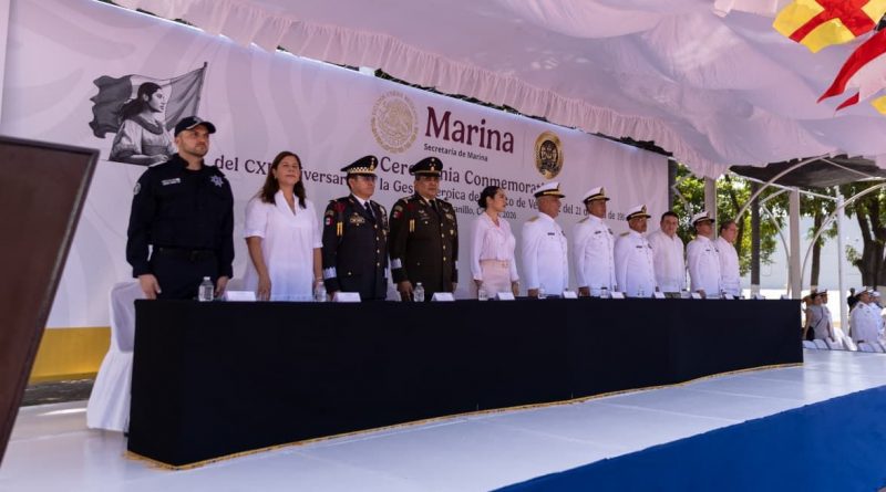 Este martes, la gobernadora de Colima, Indira Vizcaíno Silva, junto a otras autoridades de los tres niveles de gobierno, participó en la ceremonia para conmemorar el 112 aniversario de la Gesta Heroica del Puerto de Veracruz, realizada en instalaciones de la Sexta Región Naval de la Secretaría de Marina, en el municipio de Manzanillo.