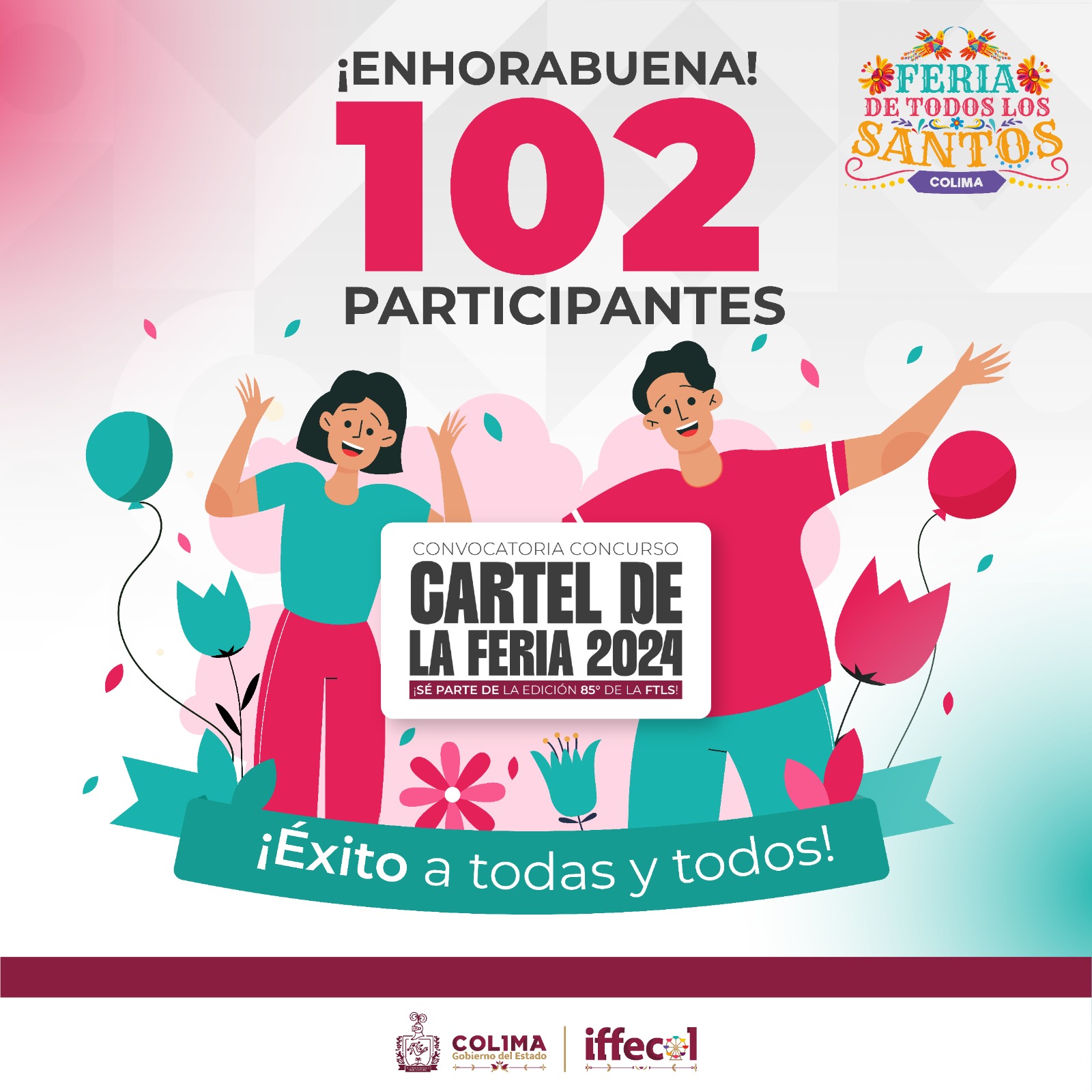 Al cierre del mes de junio, el Instituto de Fomento de Ferias y Exposiciones del Estado de Colima (Iffecol) recibió el registro de 102 participantes que buscan diseñar la imagen oficial de la edición 85 de la Feria de Todos los Santos, informó el director general Rodolfo Aguilar Dávalos.