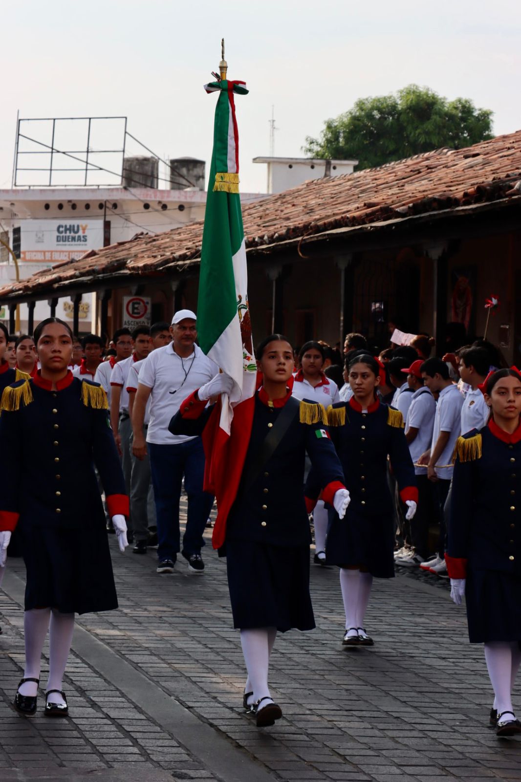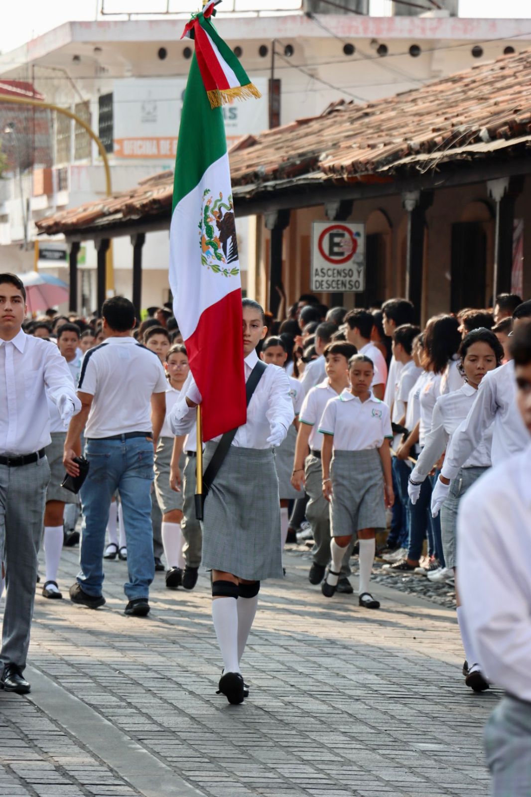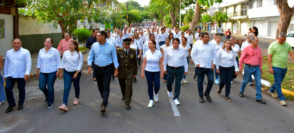 En la marcha participaron la Escolta y Banda de Guerra de la Dirección General de Seguridad Pública de Villa de Álvarez, autoridades del Municipio y de la Secretaría de Educación y Cultura, Supervisores de educación básica y funcionarios del Ayuntamiento.