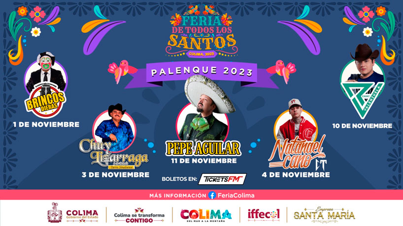 La cartelera la integran: Brincos Dieras el 1 de noviembre, Chuy Lizárraga el 3 de noviembre, Natanael Cano el 4 de noviembre, Remmy Valenzuela el 10 de noviembre, Pepe Aguilar el 11 de noviembre. La venta de boletos inicia el 15 de septiembre a las 12 horas en Plaza San Fernando, mientras que los boletos generales estarán en Rocha Hats (Villa de Álvarez), Paletería Golucci (Soriana Villa de Álvarez), Wuaco Boutique (Colima) y la venta en línea iniciará el 18 de septiembre a las 12 horas en ticketsfm.com
