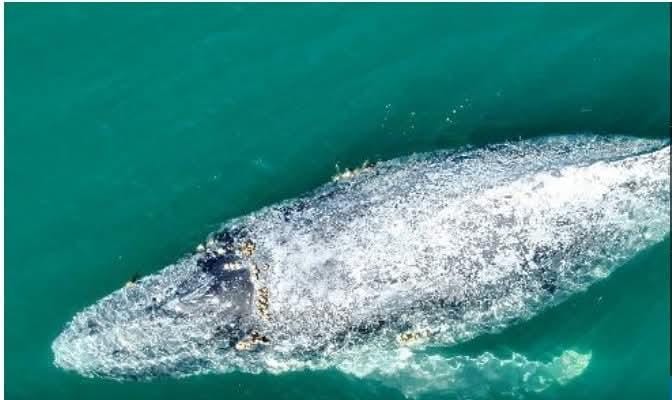 Manzanillo. Enero 17 2025.- En un comunicado, se dio a conocer que la ballena de diez metros de longitud y unos dos años de edad, entró a la bahía y llamó la atención del personal del puerto