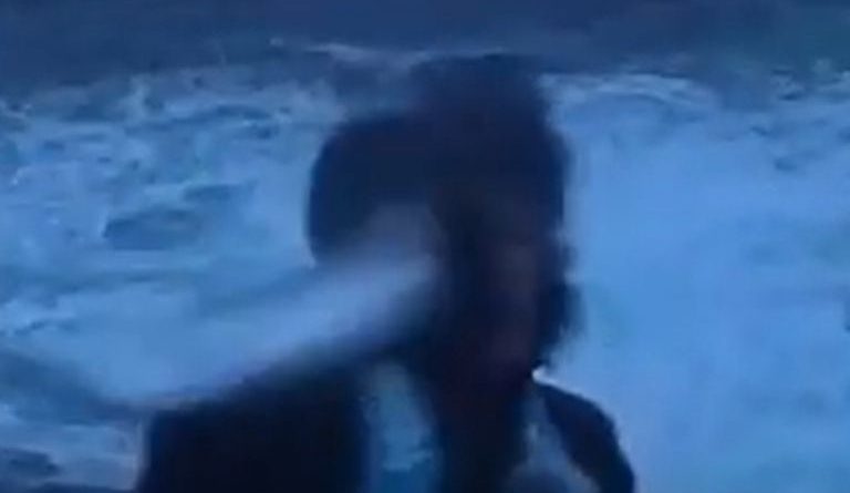 Aunque al joven comunicador le costó trabajo levantarse debido a la intensidad de los vientos y las olas que lo volvían a tumbar y hasta lo hicieron gritar, después logra ponerse en pie y hasta ríe mientras el camarógrafo sigue documentando todo, cuando se levanta se observa un chaleco inflable que lo habría ayudado a librarse de ser arrastrado por el mar. La grabación fue compartida por New York Post.