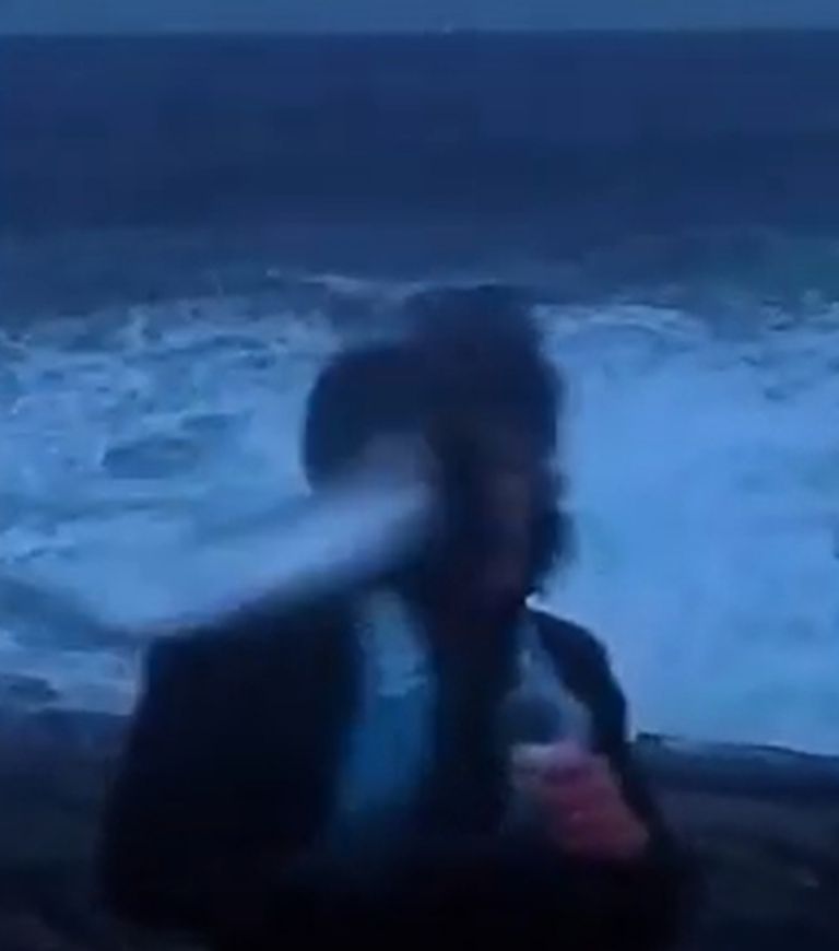 Aunque al joven comunicador le costó trabajo levantarse debido a la intensidad de los vientos y las olas que lo volvían a tumbar y hasta lo hicieron gritar, después logra ponerse en pie y hasta ríe mientras el camarógrafo sigue documentando todo, cuando se levanta se observa un chaleco inflable que lo habría ayudado a librarse de ser arrastrado por el mar. La grabación fue compartida por New York Post.