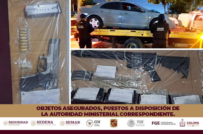 La Secretaría de Seguridad Pública (SSP) del Gobierno del Estado de Colima informa que, como resultado de las estrategias para prevenir y combatir delitos en esta entidad, elementos de la Policía Estatal Preventiva (PEP), en colaboración con personal de la Secretaría de Marina Armada de México (Semar), detuvieron en la autopista Colima-Manzanillo a tres hombres por violación a la Ley Federal de Armas de Fuego y Explosivos y por delitos contra la salud.