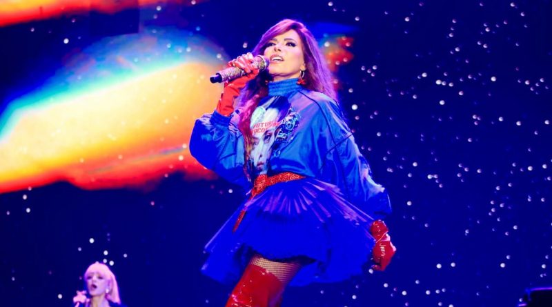 Desde su aparición en el escenario, la cantante regiomontana fue recibida entre aplausos, gritos y una ovación multitudinaria que marcó el inicio de una noche inolvidable. Temas icónicos como Pelo suelto, Dr. Psiquiatra, Todos me miran y Con los ojos cerrados, pusieron a cantar y bailar al público que abarrotó el Foro Principal del recinto ferial.