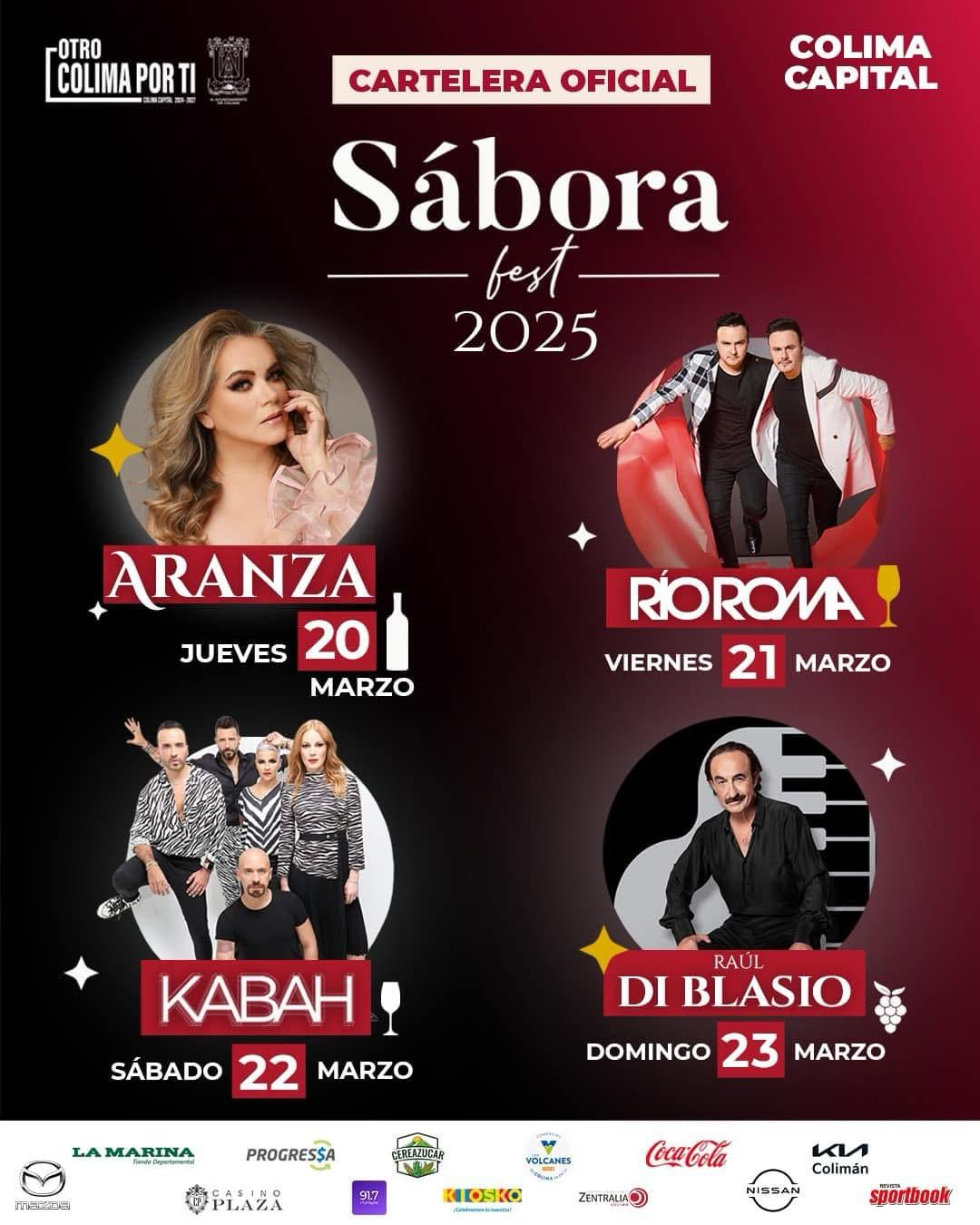 *El festival abrirá con la presentación de Aranza, anunció el edil capitalino *El presidente municipal de Colima Riult Rivera Gutiérrez presentó la cartelera oficial del festival Sabora fest 2025, que se desarrollará en el centro de esta capital del 20 al 23 de marzo.