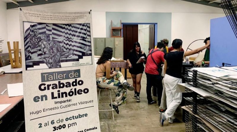 En el Centro de Formación y Producción de Artes Gráficas “La Parota” del municipio de Comala Pueblo Mágico, se dieron por concluidos los cursos que durante semanas previas impartió el maestro Hugo Ernesto Gutiérrez Vázquez, a quince artistas gráficos en formación, que recibieron nuevos conocimientos teóricos y prácticos, además de herramientas para perfeccionar sus grabados sobre linóleo.