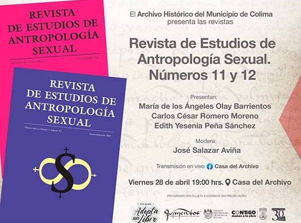 En el marco de la Feria del libro Adopta un Libro, organizado por el Archivo Histórico del Municipio de Colima (AHMC), este viernes a las 19:00 hora se presentará en la Casa del Archivo la Revista de Estudios de Antropología Sexual Números 11 y 12.