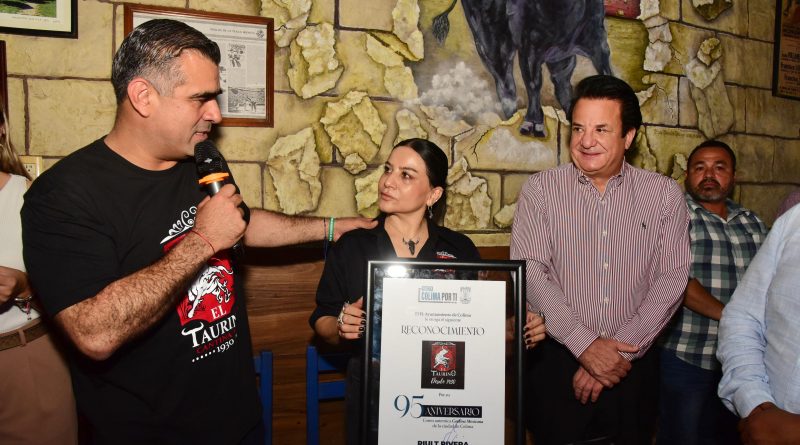El alcalde hizo entrega de un reconocimiento a «El Taurino por el 95 aniversario de la auténtica cantina de la ciudad de Colima», les deseo que sigan subsistiendo muchos años más, dijo el edil capitalino.