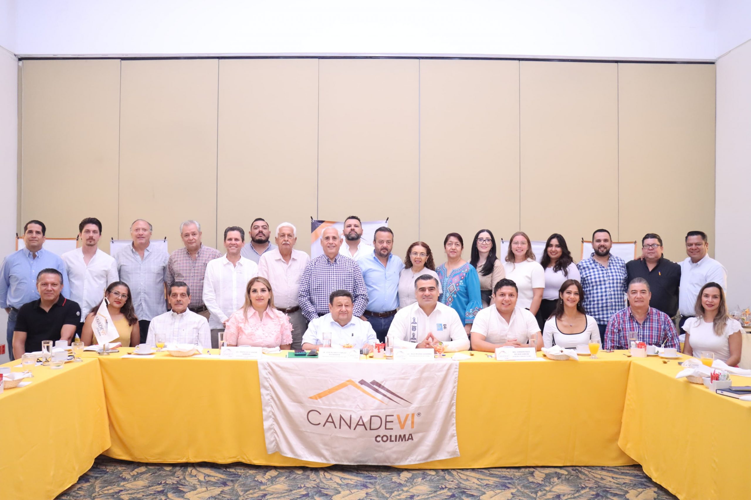 Colima, Col., 20 de mayo de 2025.- El presidente municipal de Colima, Ríult Rivera Gutiérrez, encabezó esta mañana una reunión con integrantes de la Cámara Nacional de la Industria de Desarrollo y Promoción de Viviendas (Canadevi) en el Estado.