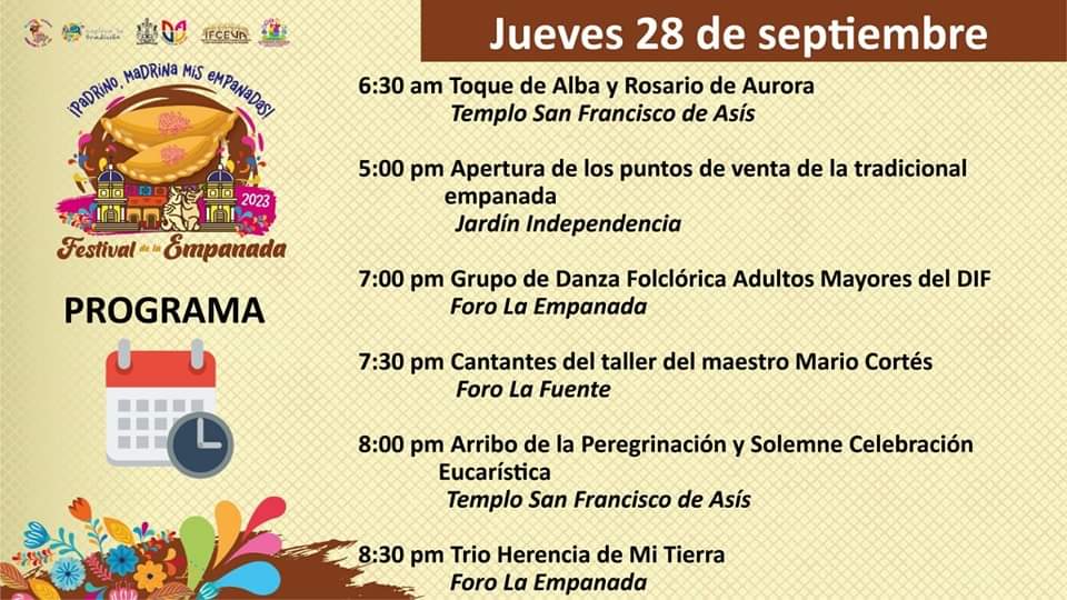Programa de actividades del Festival de la Empanada 2023, de este jueves 28 de septiembre.