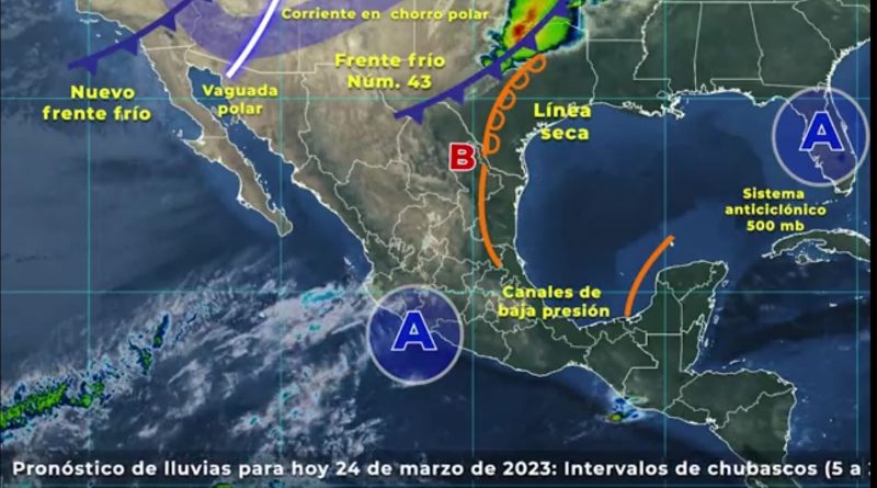 El organismo dependiente de la Comisión Nacional del Agua (Conagua), fuente oficial del Gobierno de México, informó que una circulación anticiclónica en niveles medios de la atmósfera ocasionará altas temperaturas en la mayor parte de la República Mexicana, con máximas de 40 a 45 °C en Colima, Jalisco, Michoacán, Guerrero, San Luis Potosí, Tamaulipas, Nayarit, Morelos, Oaxaca y Veracruz.