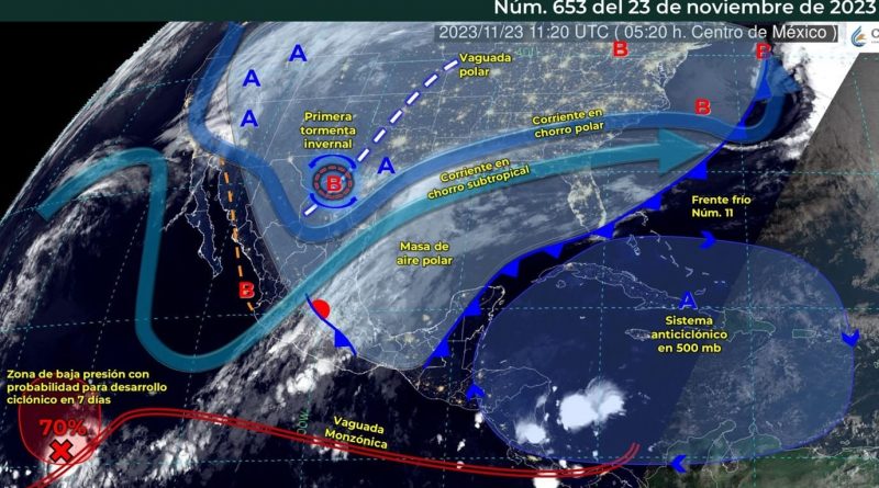 La Unidad Estatal de Protección Civil (UEPC) del Gobierno del Estado de Colima mantiene en vigilancia canales de baja presión, que en interacción con ingreso de humedad generado por la corriente en chorro subtropical, ocasionarán lluvias y chubascos sobre entidades del occidente, centro, oriente y sur de la República Mexicana, incluido el estado de Colima.